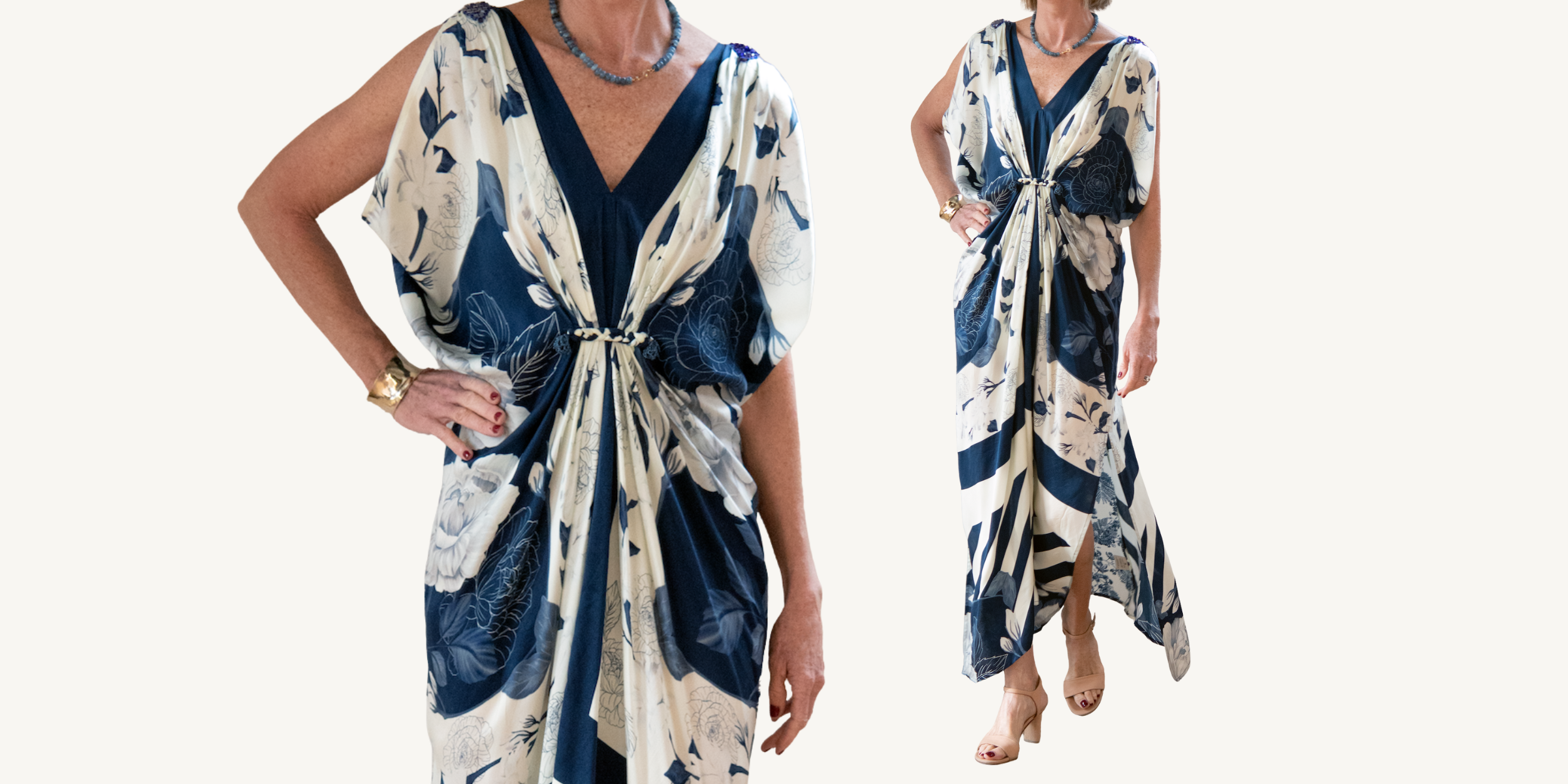 short sleeve draped dress - dusk multi