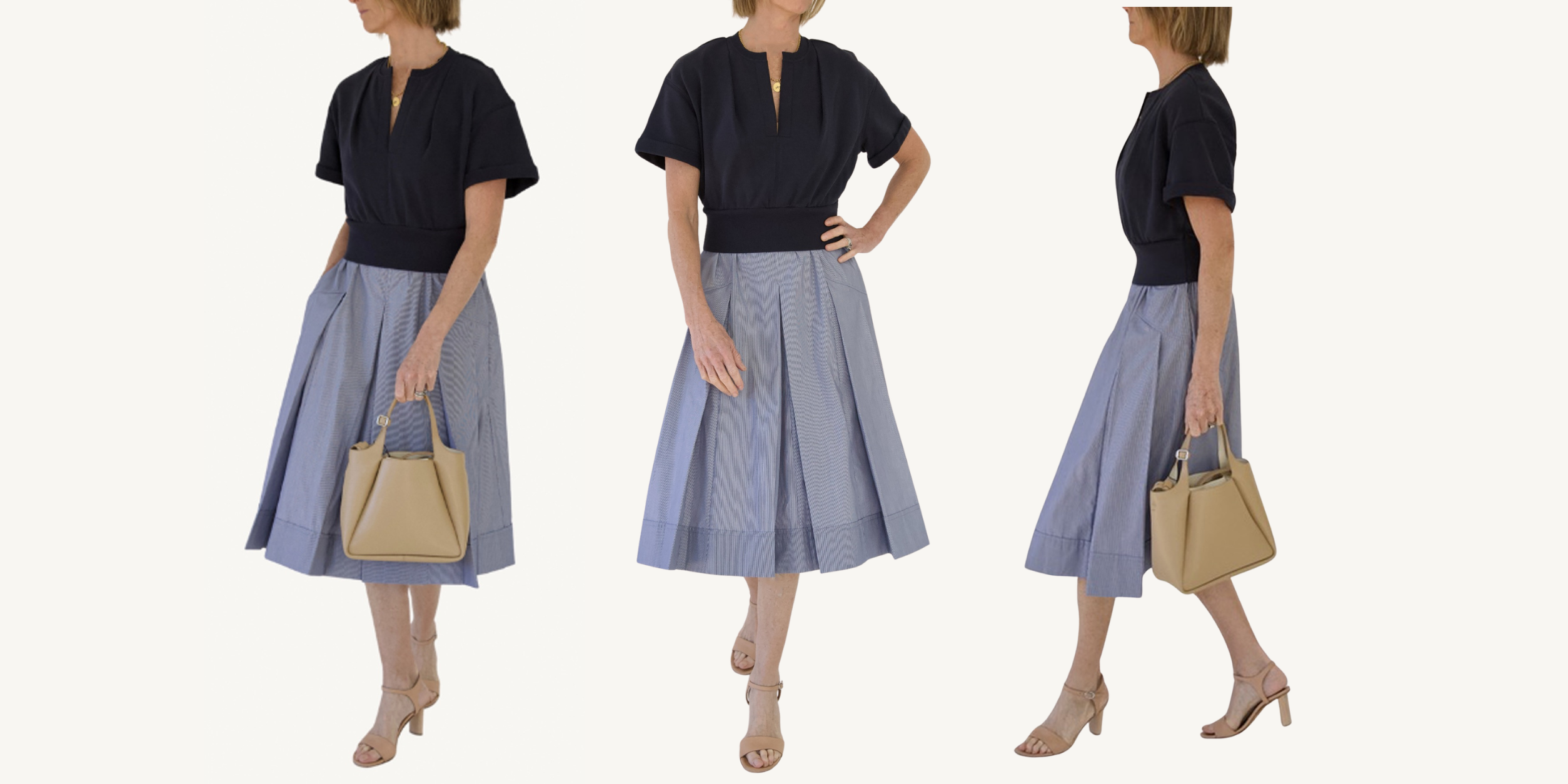 french terry combo dress - midnight