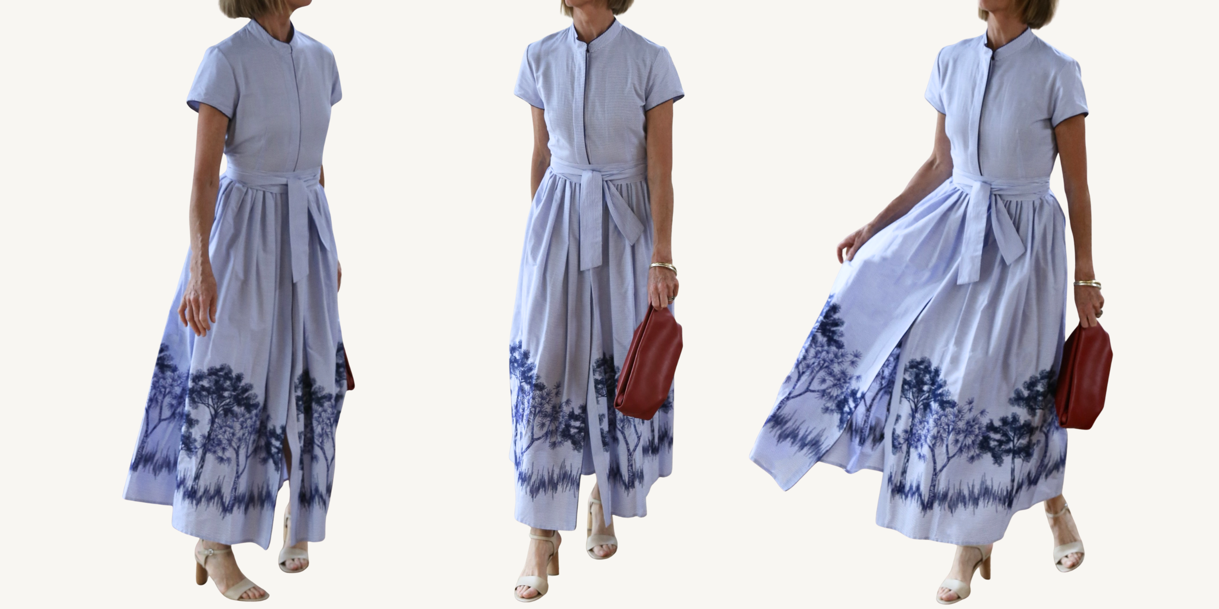 hand beaded sundowner maxi - ivory and navy multi motif